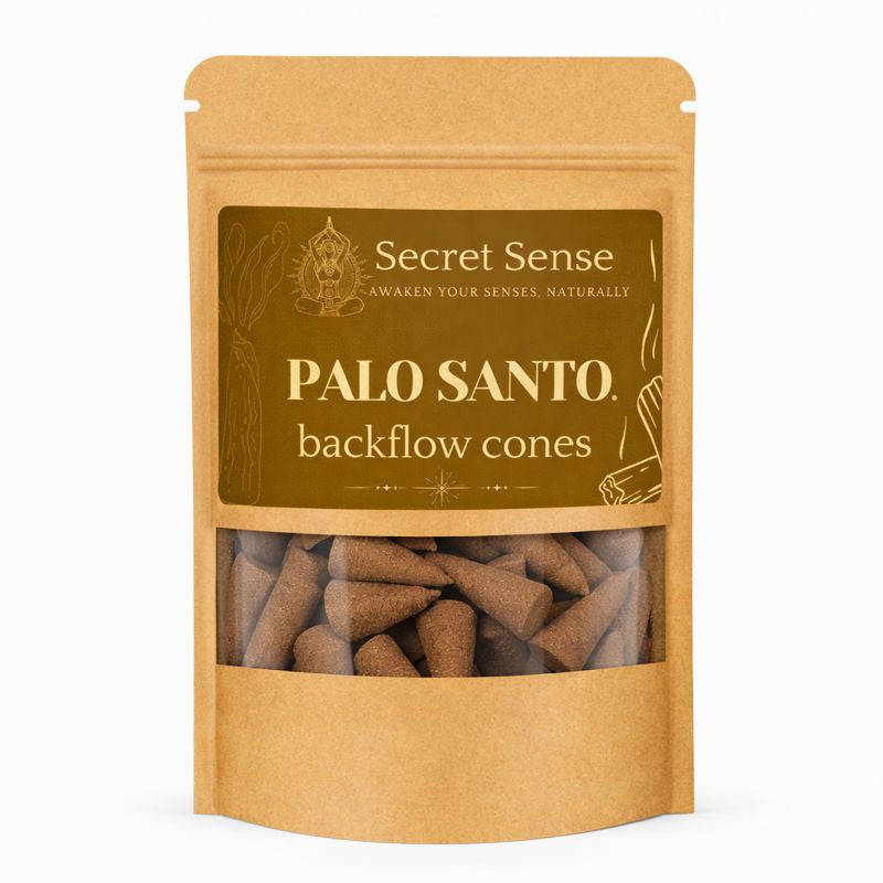 Secret Sense Palo Santo Backflow Cones (20 Pack) A Warm, Wooded Aroma for Grounding, Clarity...