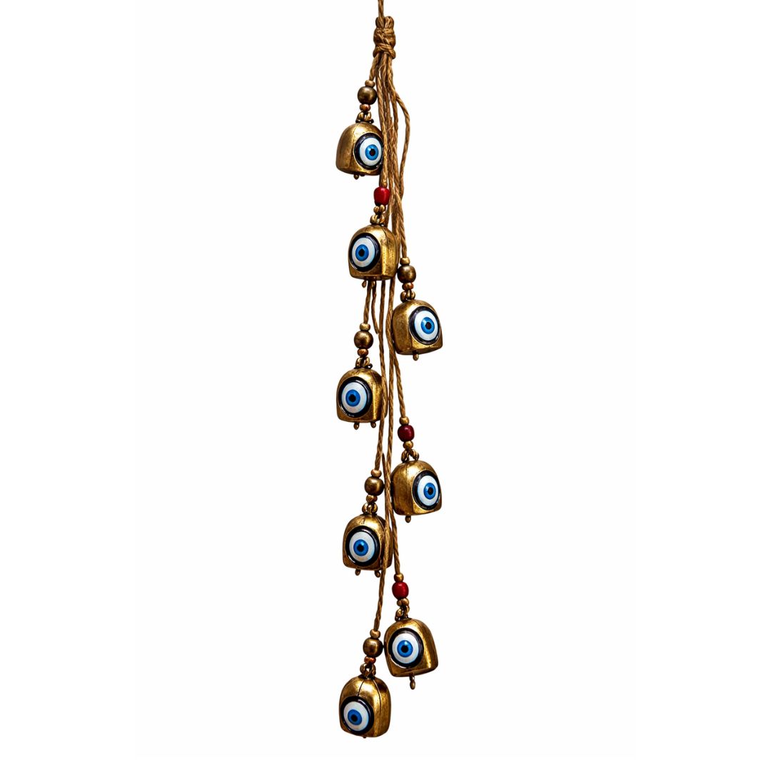 Hanging Metal Turkish Eye Bells on Rope – 100cm Add protection, positivity, and peaceful sound...