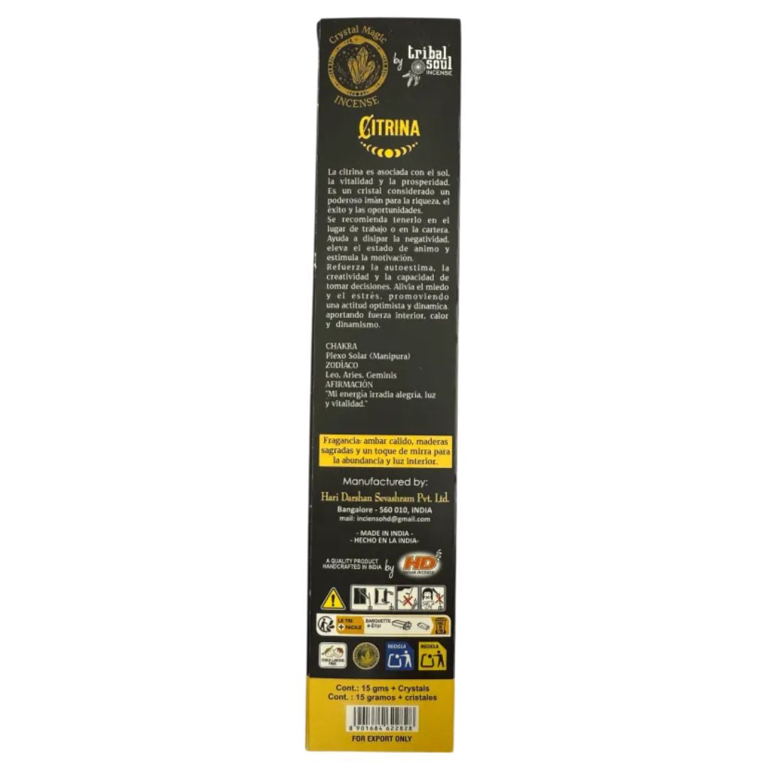 citrine incense, tribal soul incense, crystal magic incense, prosperity incense, joy incense, masala incense sticks, handmade incense with crystals, organic incense sticks, spiritual incense, abundance incense