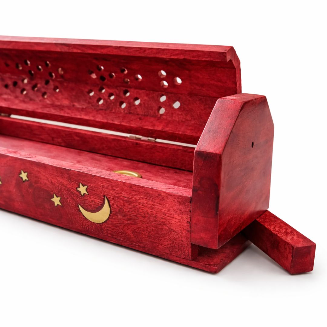 Red Moon and Sun Ash Catcher Box – Wooden Incense Holder