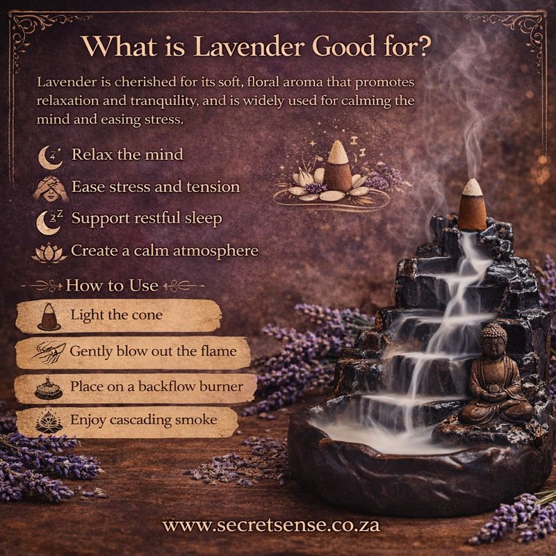 Create a moment of quiet with Secret Sense Lavender Backflow Cones. Softly floral with subtle herbal notes, lavender is widely loved for its familiar, comforting scent — one that naturally signals the body and mind to slow down.