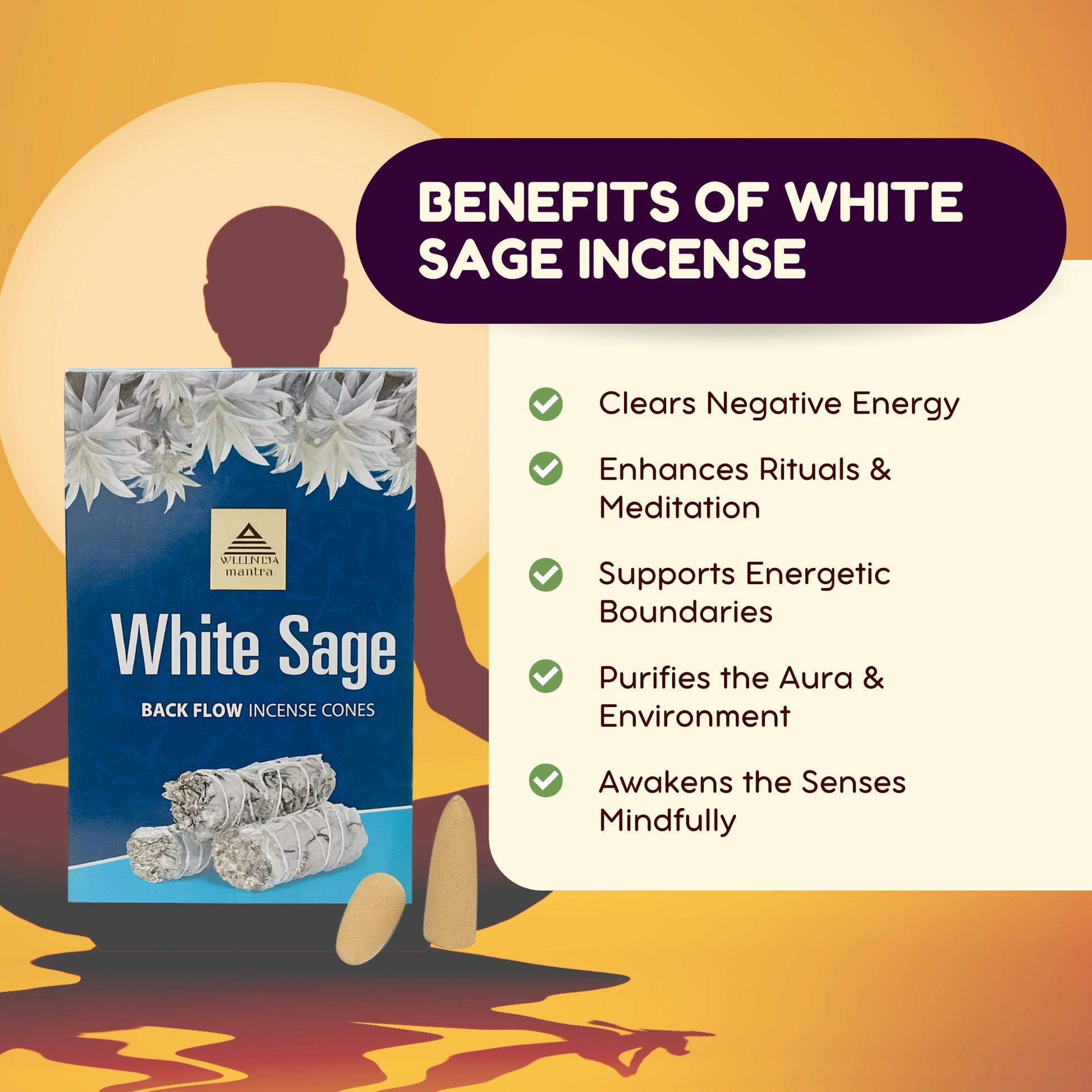 Wellness Mantra White Sage Backflow Incense Cones (10 Pack)
