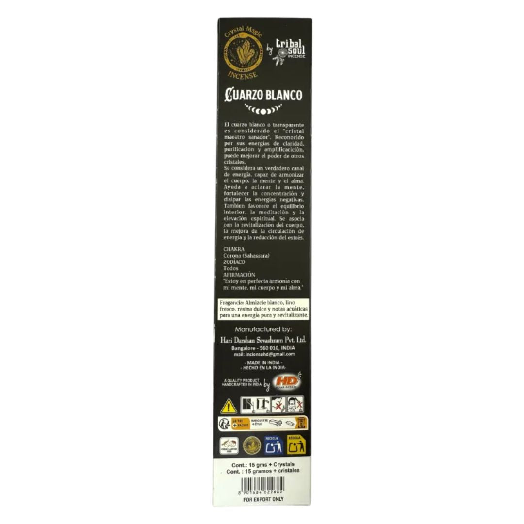 white quartz incense, tribal soul incense, crystal magic incense, quartz crystal incense, meditation incense, masala incense sticks, handmade incense with crystals, organic incense sticks, spiritual incense, healing incense